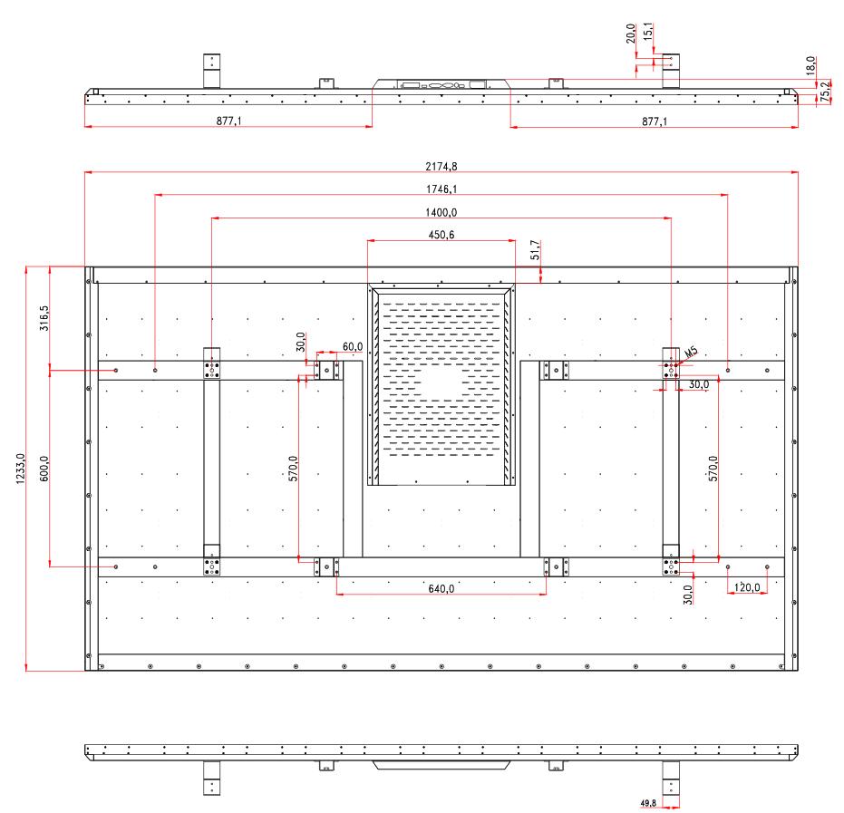 Size(mm):2174.8mm(W)×1233mm(H)×75.2mm(D)