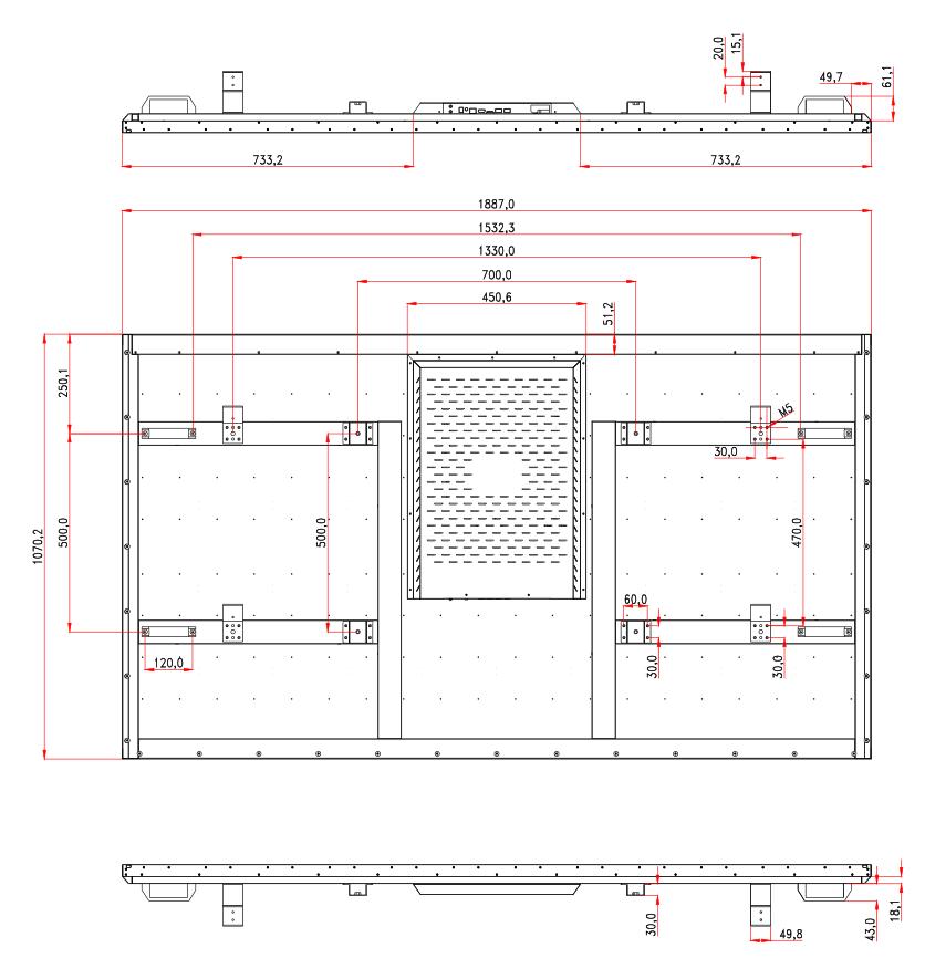 Size(mm):1887mm(W)×1070.2mm(H)×75.1mm(D)